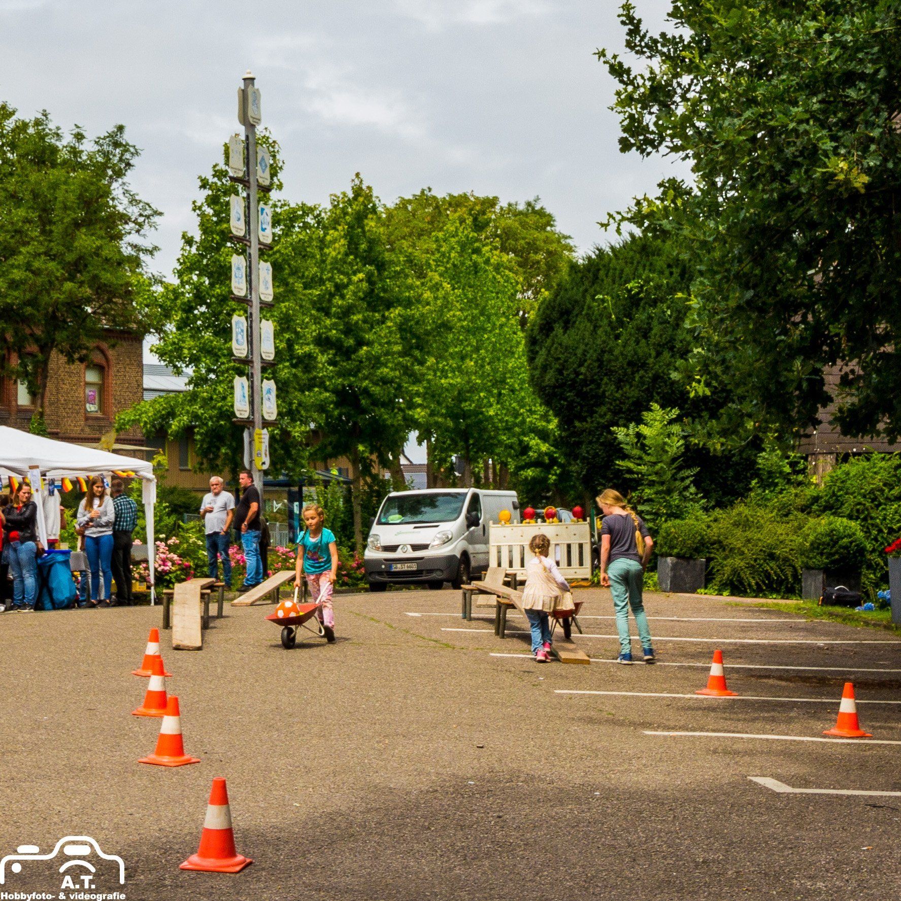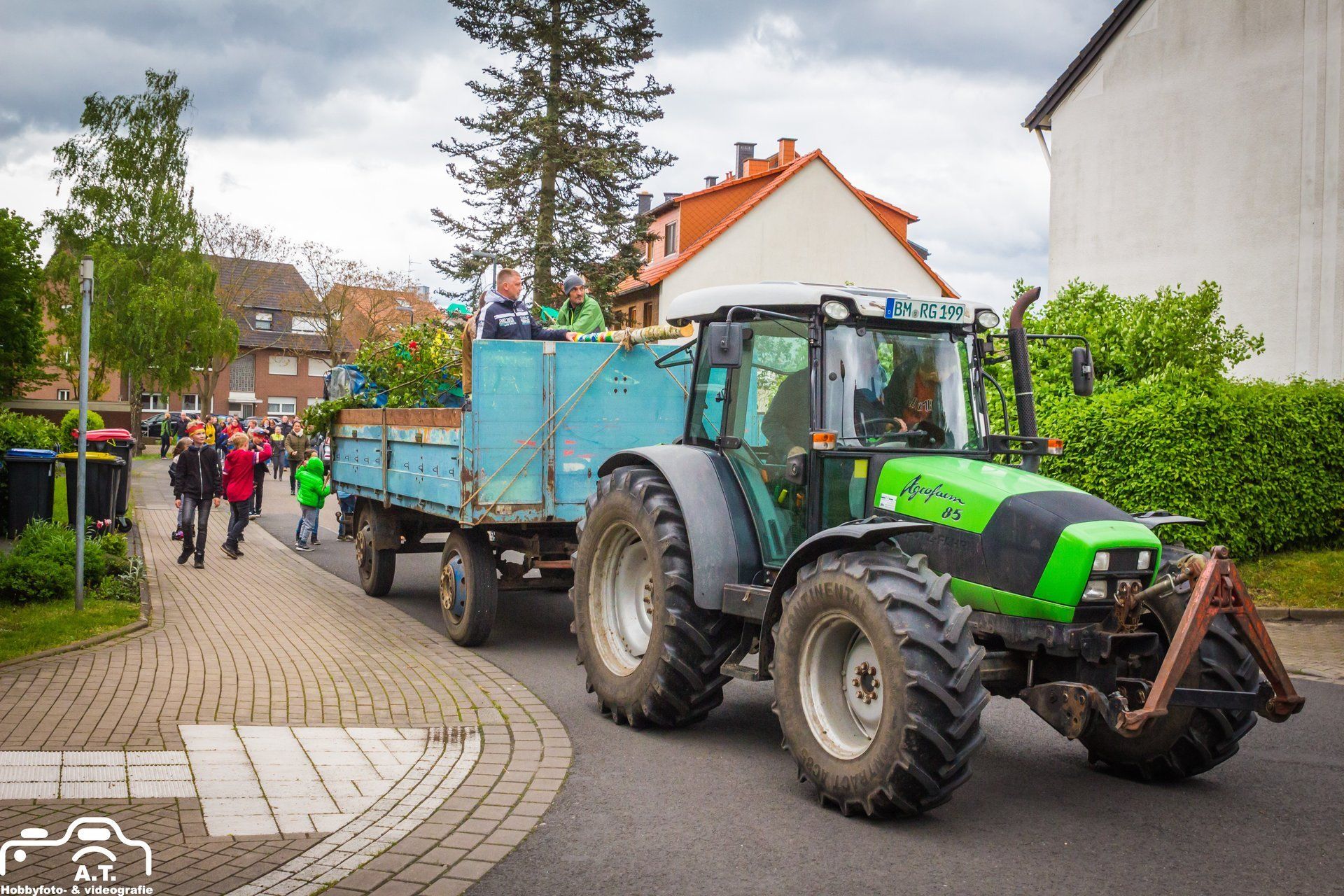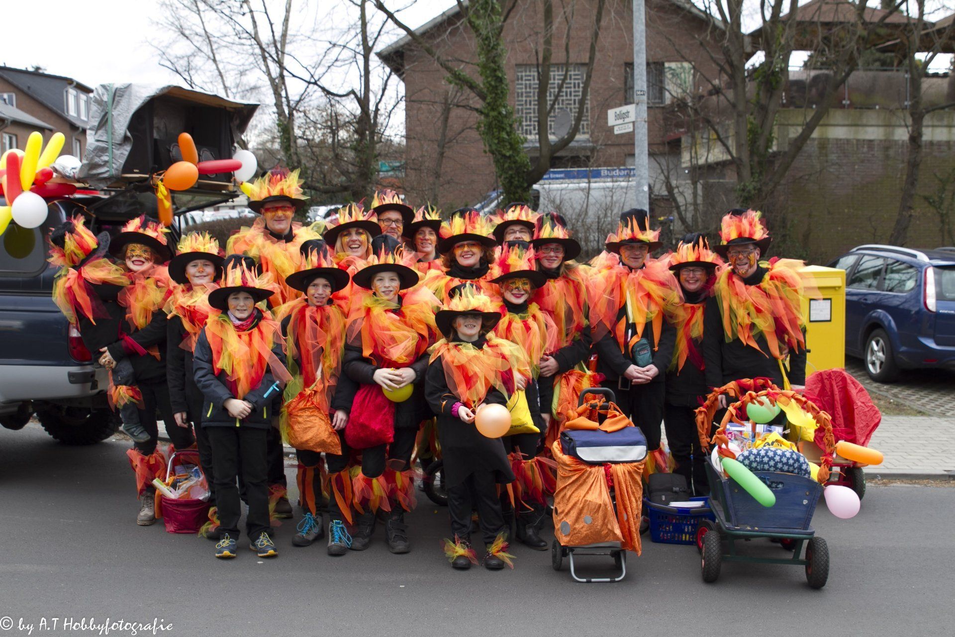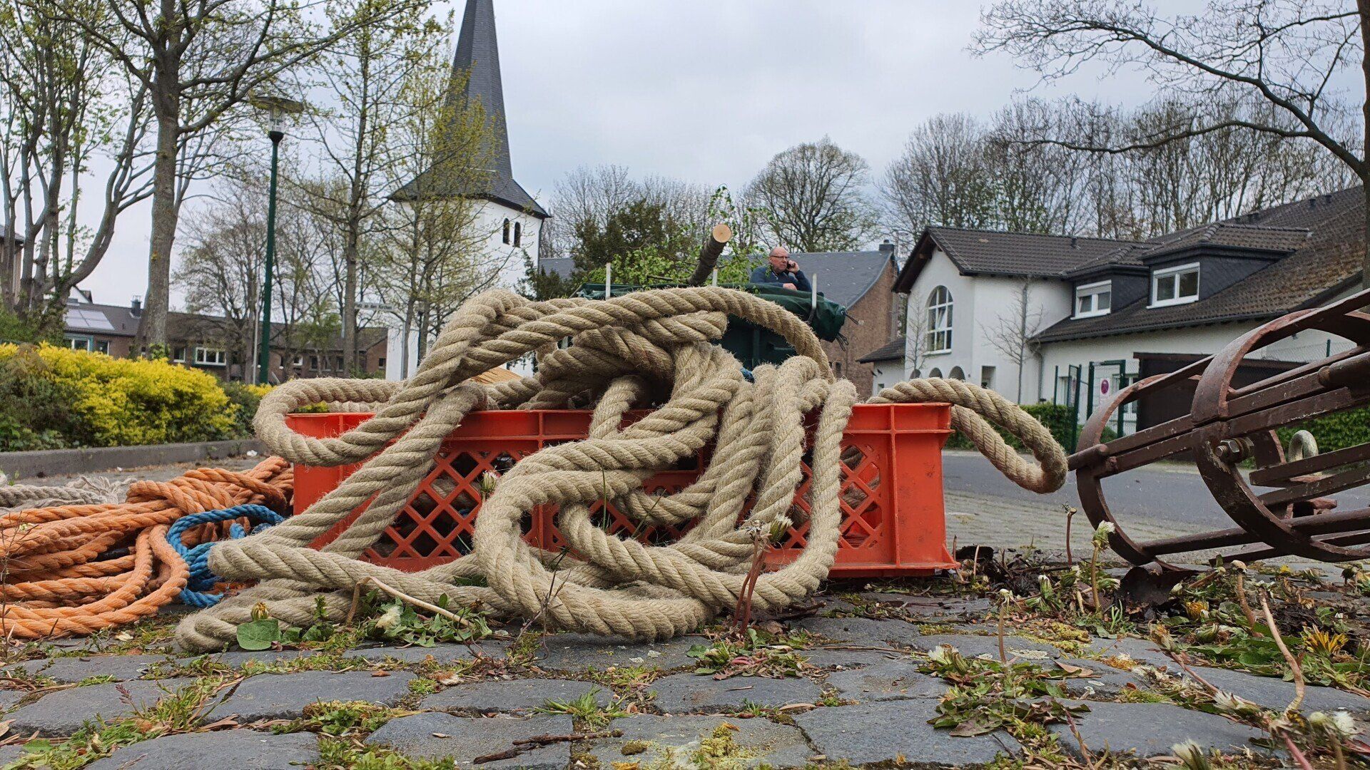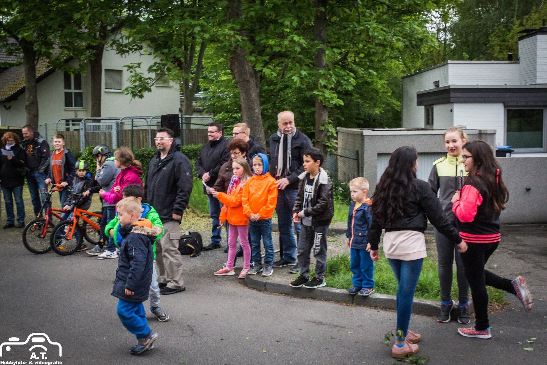 Für diejenigen die den von uns bunt geschmückten Baum noch sehen wollen müssen nur gegenüber in die Plögerstraße gehen etwas hoch und dann links ( Straßenname in der Hütte ) und schon sieht man den schönen Maibaum am Hauseingang am Fallrohr befestigt .