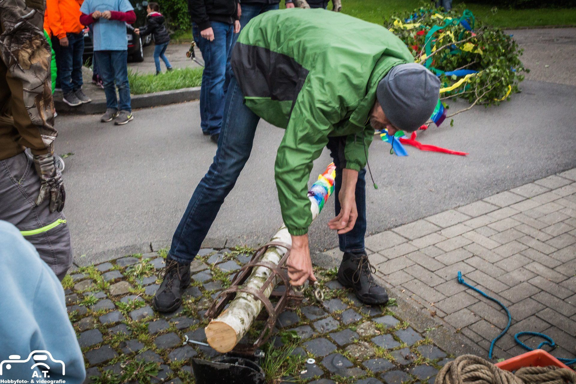 Leider wurde Der Maibaum in der Nacht von Samstag auf Sonntag von unbekannten abgeschnitten und mitgenommen .